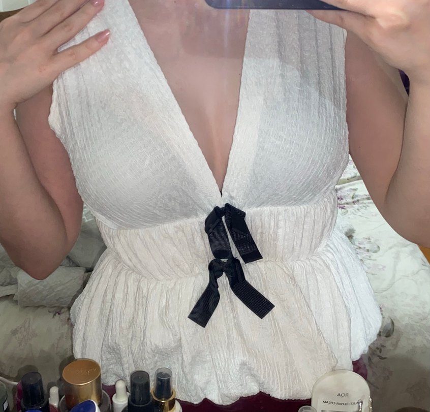Beyaz Göğüs Dekolteli bluz