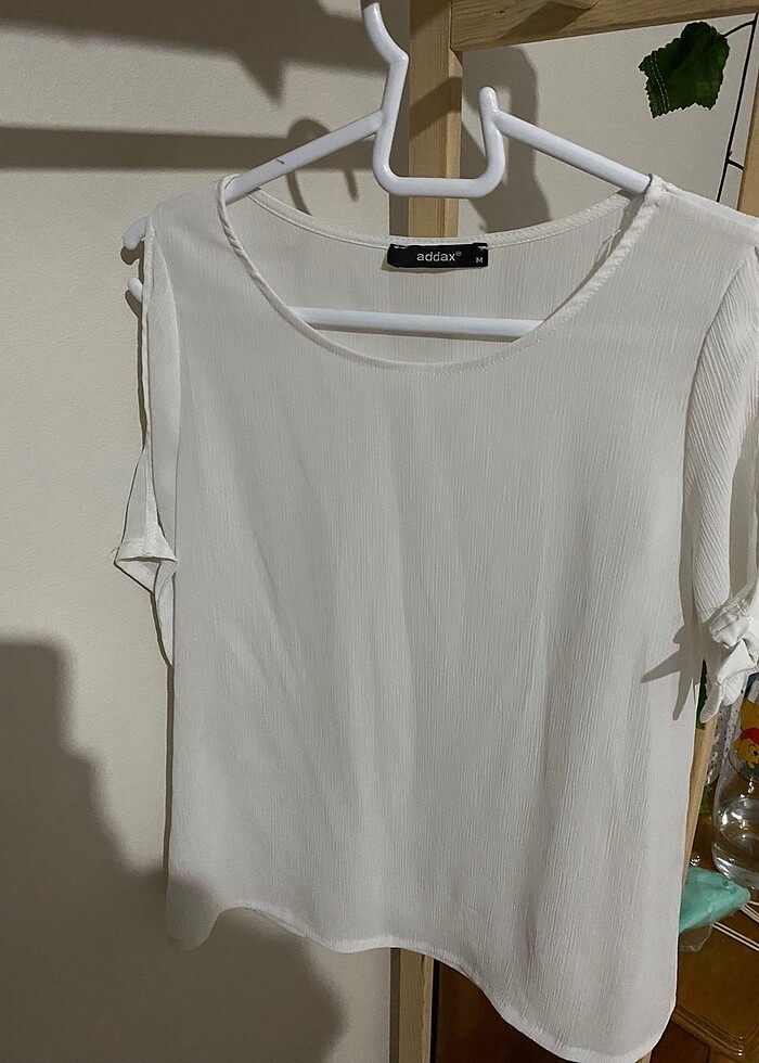 Beyaz gömlek kolları detaylı, hafif iç gösteriyor 38 beden