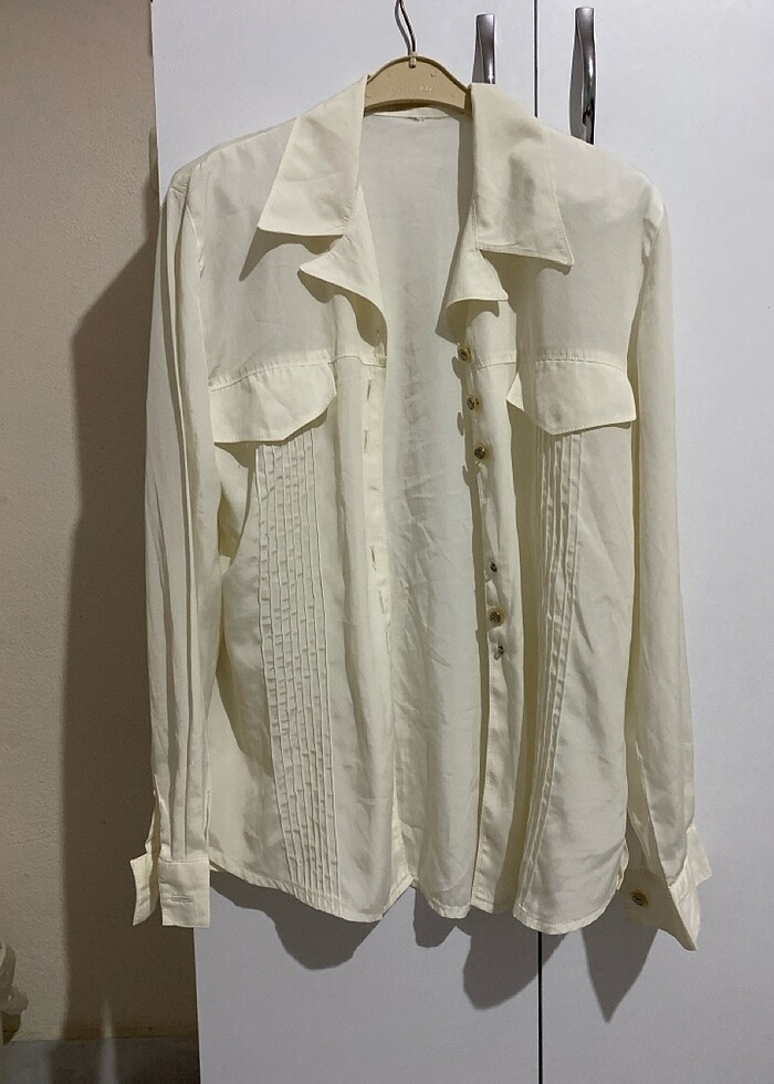 Tam beyaz değil kırık beyaz ipek gömlek 2 düğmesi eksik vatkalı vatkasını çıkarabilirsiniz