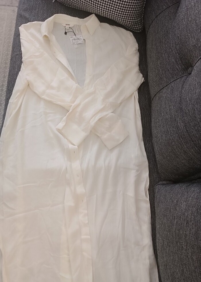Sıfır üründür etiketiyle duruyor. Yazlık üründür. Pareo tarzı bir gömlektir. Kenarlarından yırtmacı vardır. Denizden havuzdan çıkınca mayo bikini üzerine alınabilir. Makul tekliflere açığım.