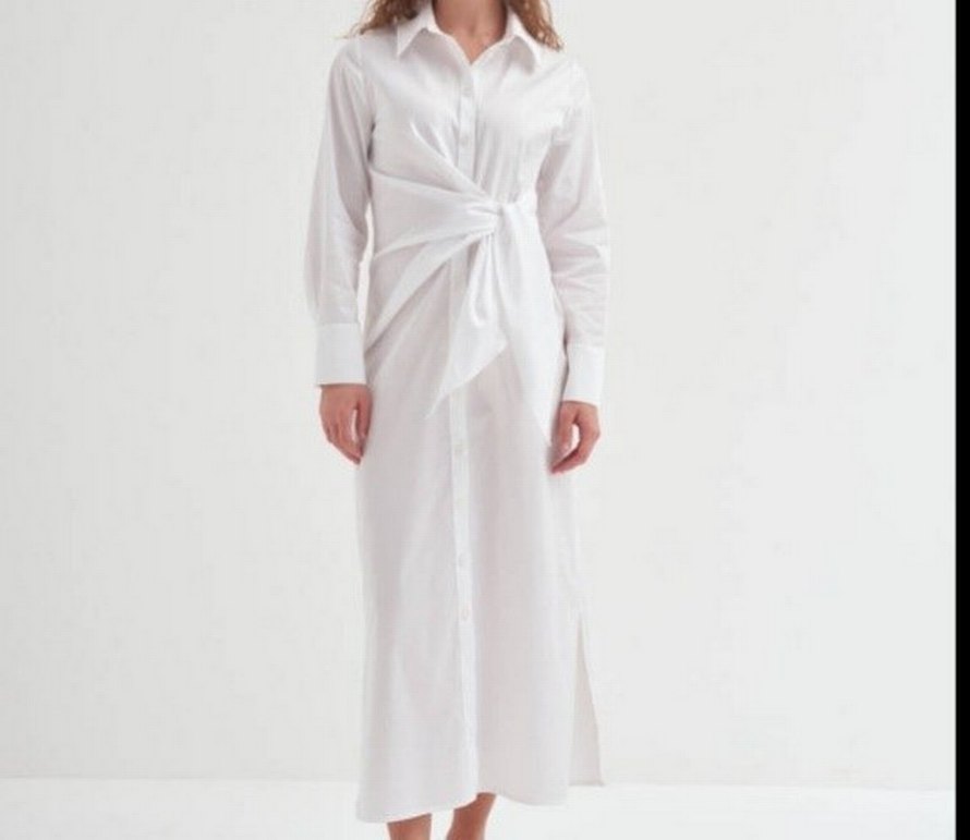 Beyaz Gömlek Elbise Bağlamalı