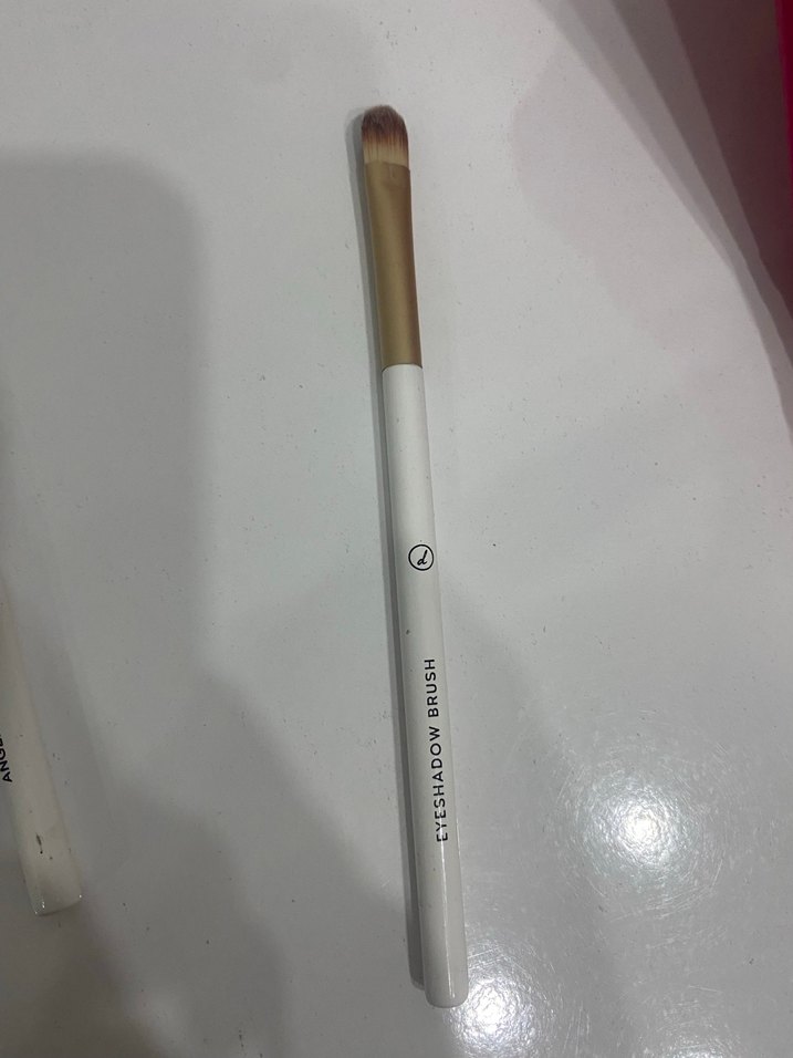 Yumuşak kıllı, ince saplı beyaz göz farı fırçası, hassas makyaj uygulaması için uygun.