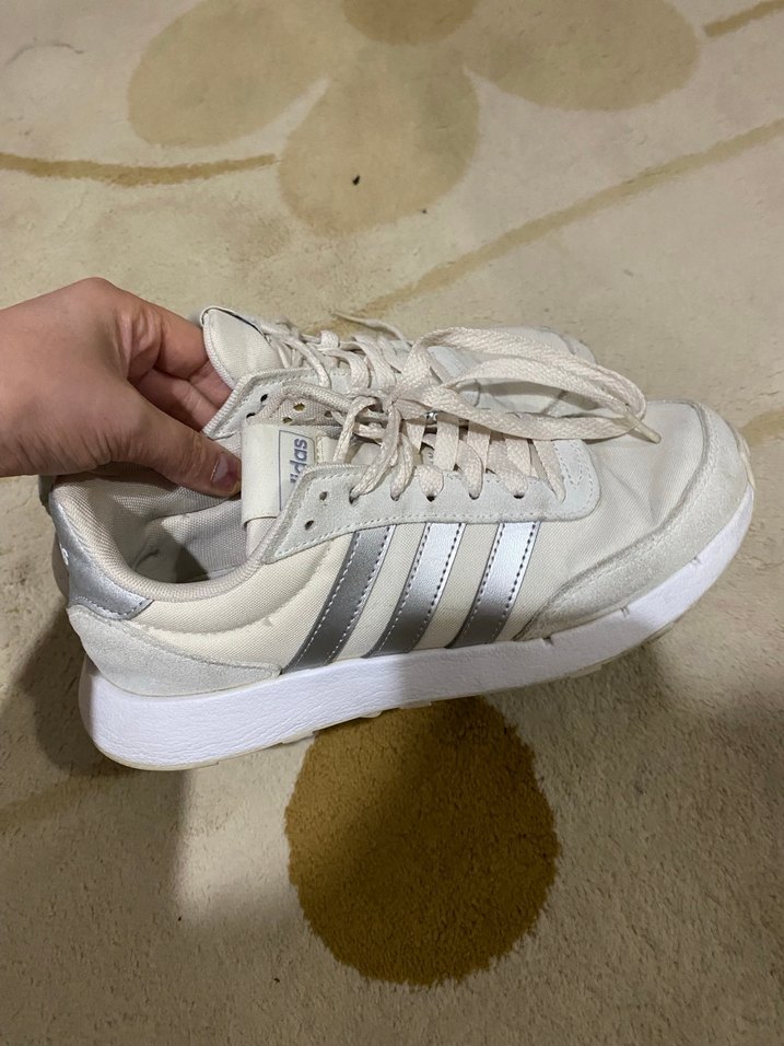 Beyaz ve krem Adidas kadın spor ayakkabısı, az kullanıldı orijinaldır