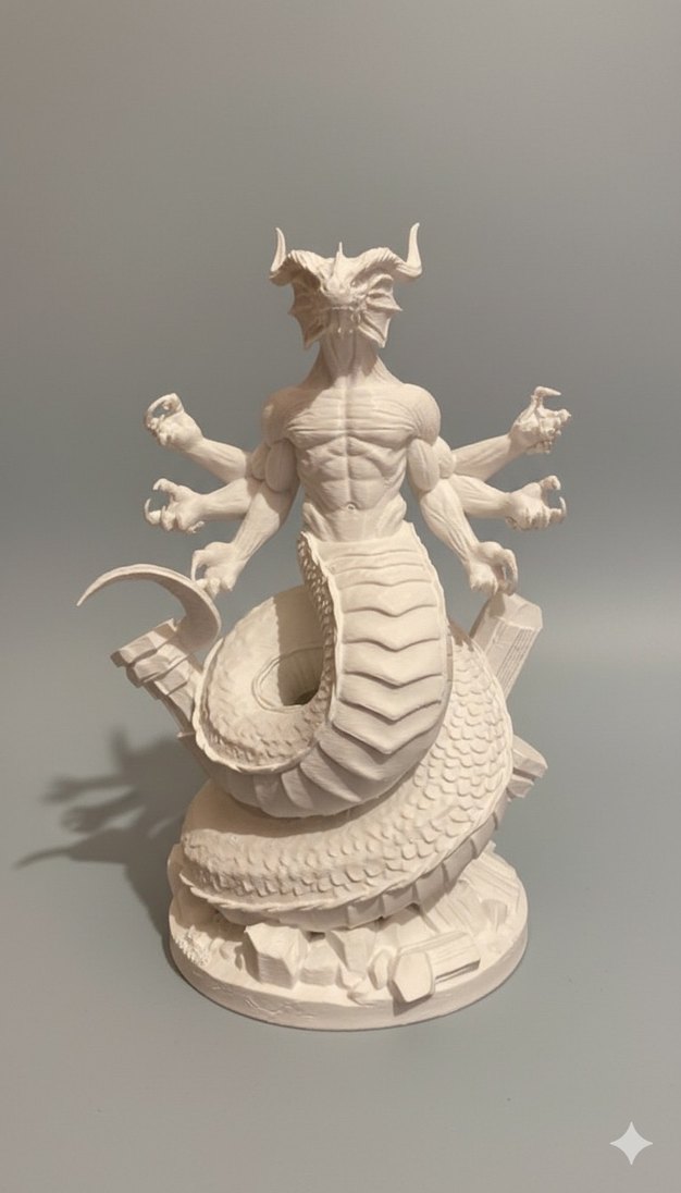 Detaylı kas ve pul dokularına sahip beyaz gri aksiyon figürü, fantastik yaratık tasarımı içerir.