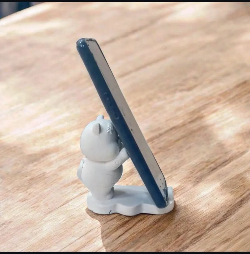 Bu telefon tutucu, beyaz ve gri ayı tasarımı ile cihazınızı sabit tutar.