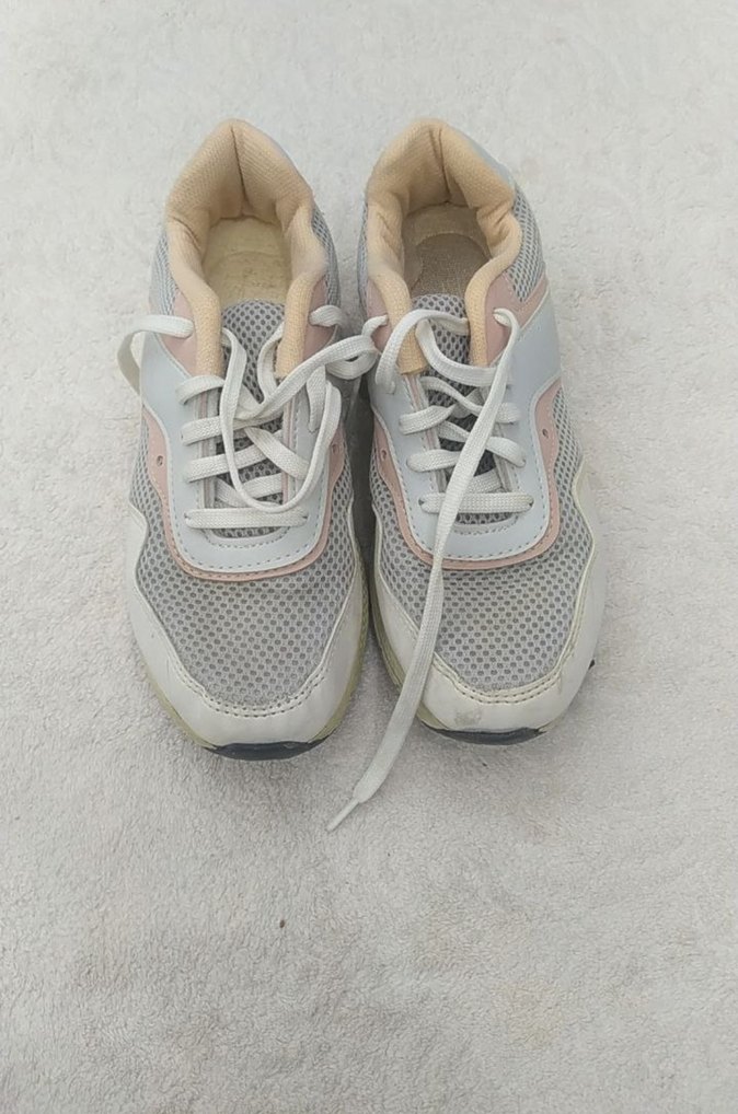 Beyaz Gri Bağcıklı Kadın Spor Ayakkabı