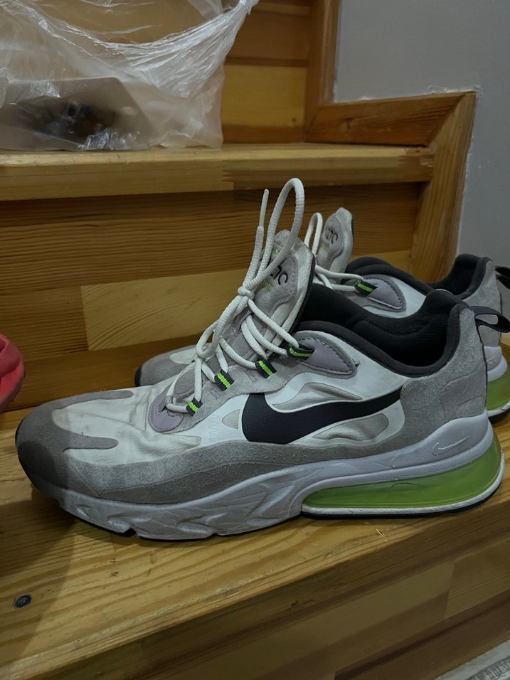 Beyaz ve gri tonlarında bağcıklı, tie-dye desenli erkek spor ayakkabısı. Kauçuk tabanlı, hava yastıklı konforlu tasarım, günlük athleisure ve spor stiline uygun. 44,5 numara