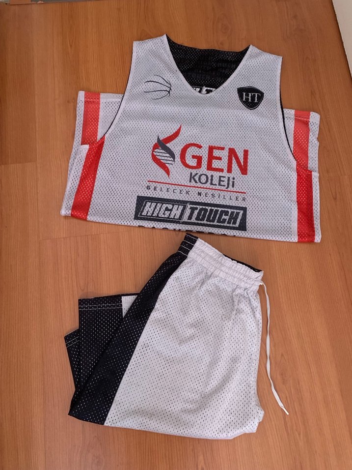 Beyaz ve gri renklerde, baskılı, kısa kesim, kolsuz erkek spor atlet takımı. Sentetik kumaştan, dar kesim ve yuvarlak yaka. Velcro detaylı, spor ve sokak modası için uygun.