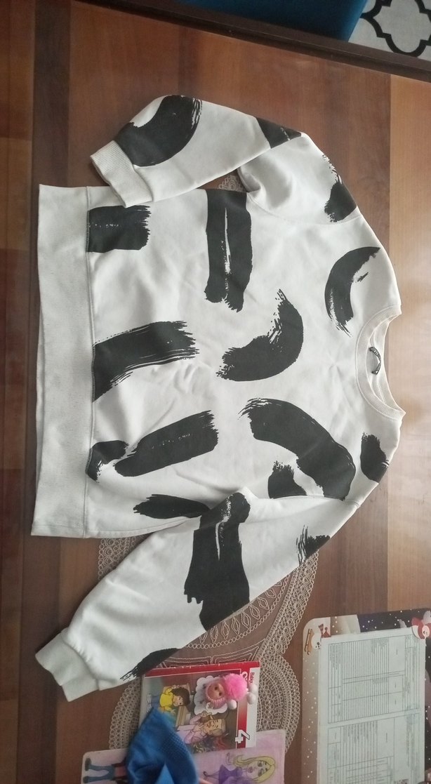 Beyaz Gri Baskılı Kadın Zara Sweatshirt