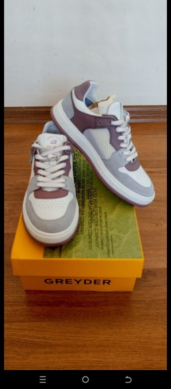 GREYDER markalı bağcıklı ,beyaz gri kadın spor ayakkabısı, baskılı detaylarla sokak stiline uygun. 38 numara ama kalıp dar 37 numara gibi