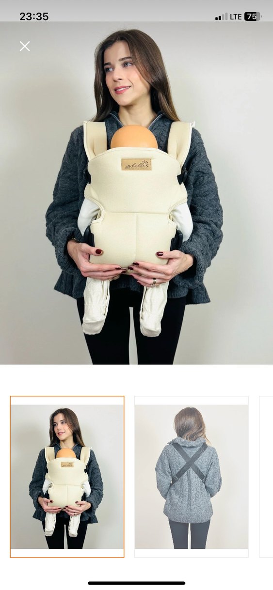 Yumuşak destekli oturma alanı ve dolgulu omuz askılarıyla beyaz ve gri tonlarda bebek kanguru. Ön ve sırt taşıma seçenekleri sunar.
