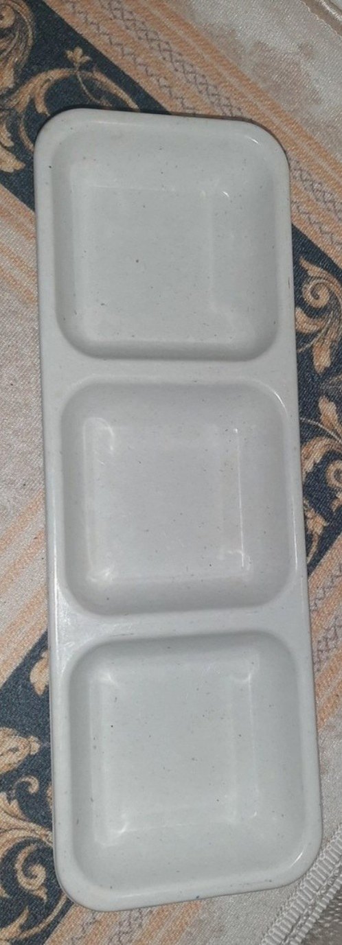 Beyaz ve gri renkte, desen içermeyen bölmeli tabak. Counterculture tarzında, farklı yiyecekleri ayrı ayrı sunmak için uygundur. ️