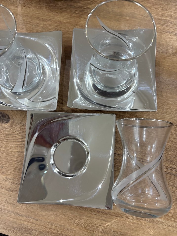 Tiamo ela seti 24 parca fincan seti , çay bardakları ve tabakları mevcuttur , paslanmaz çelik