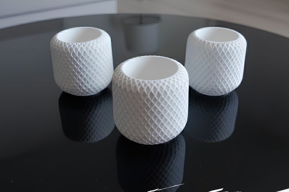 Küçük mumlar için beyaz ve gri desenli dokulu mumluk seti. Modern ve şık tasarıma sahiptir. ️