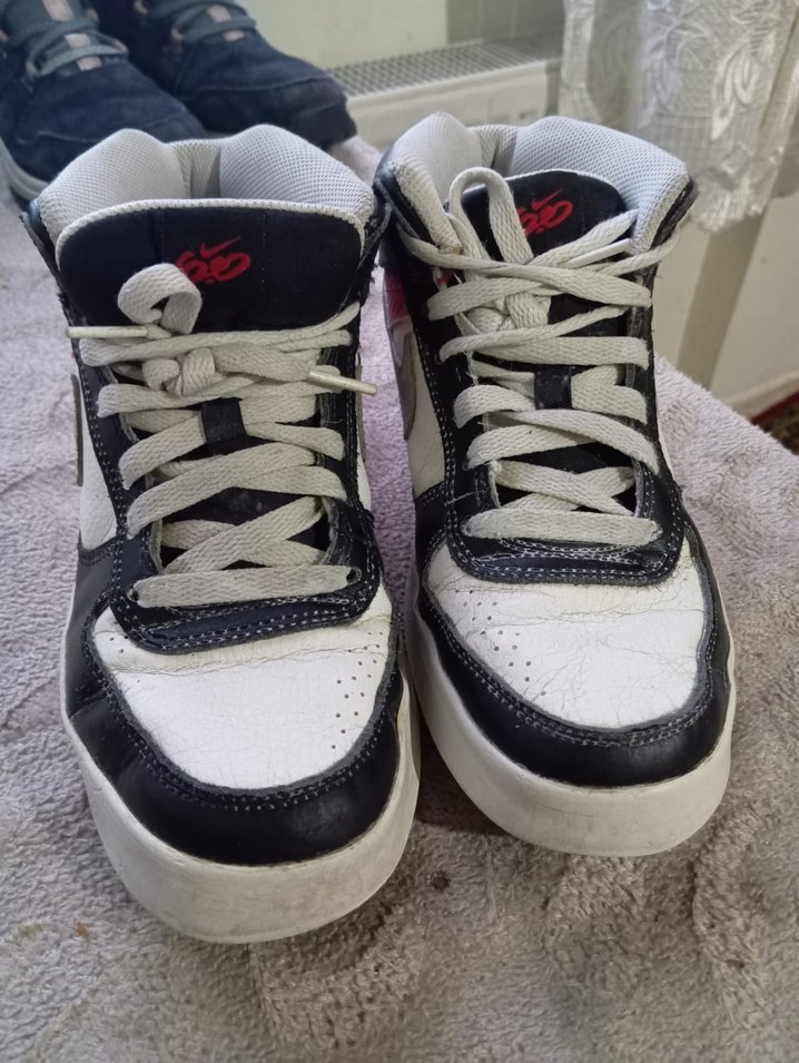 Beyaz ve gri renklerde, dolgu topuklu ve cırt cırtlı kadın spor ayakkabısı. Dayanıklı ve rahat kauçuk malzemeden üretilmiştir.