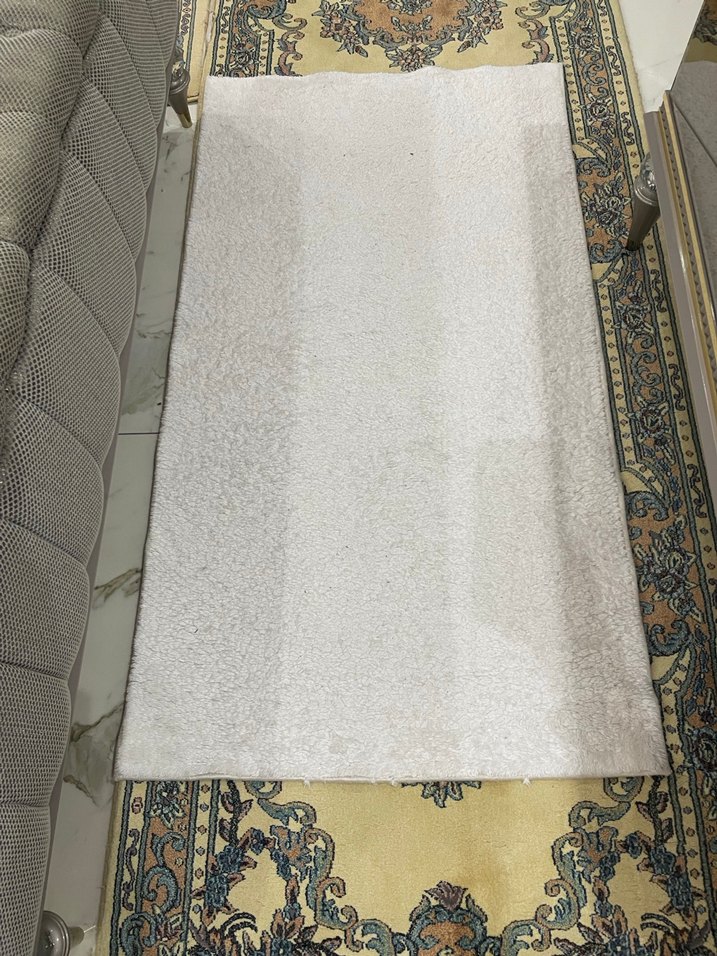 Beyaz ve gri tonlarında düz desene sahip halı, yumuşak ve nötr bir dokunuş sağlar. Farklı dekorasyonlarla uyumludur.
