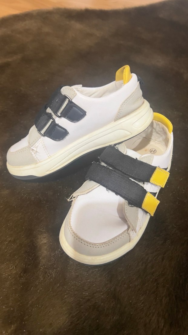 Beyaz ve gri renklerde, kaydırmaz tabanlı, cırt cırtlı erkek çocuk spor ayakkabısı, sokak stiline uygun tasarım sunar.