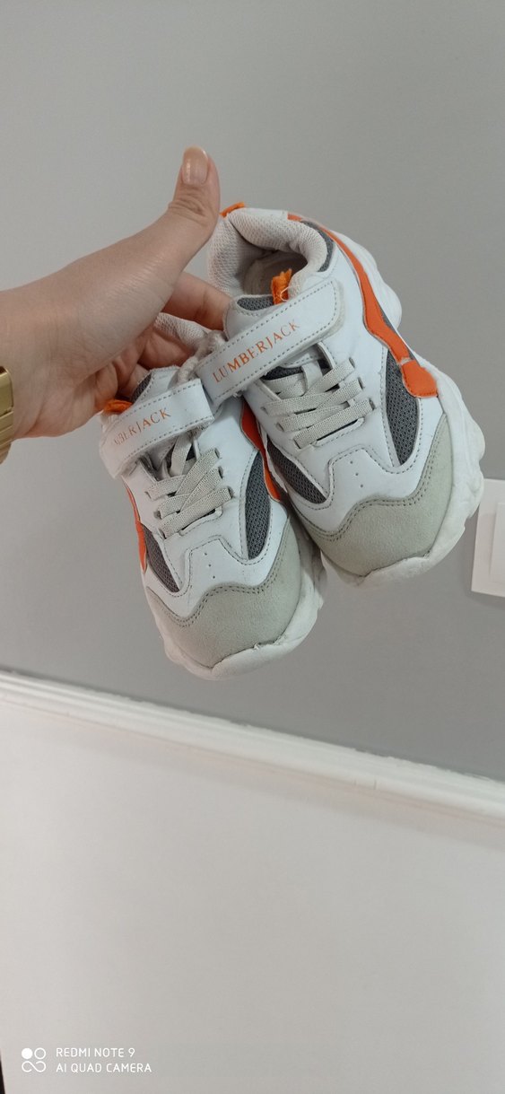 Beyaz ve gri tie-dye desenli, cırt cırt bantlı ve kauçuk tabanlı erkek çocuk spor ayakkabısı.