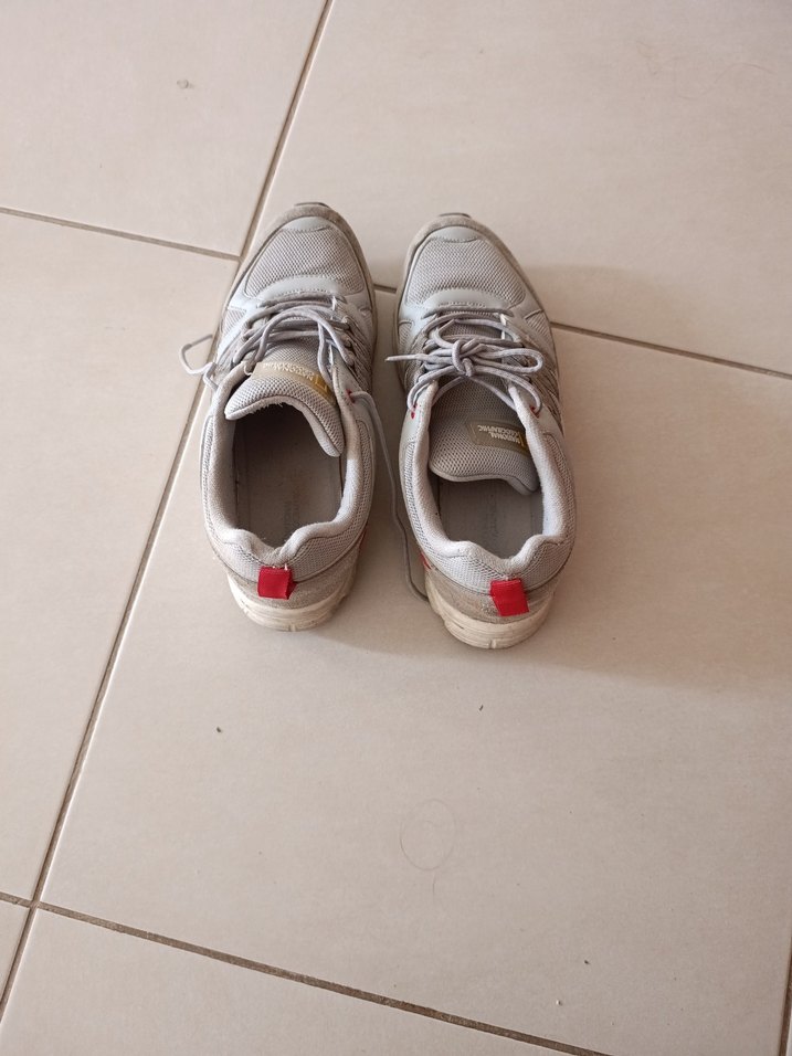 Beyaz ve gri renkli, bağcıklı, erkek spor ayakkabısı. Günlük kullanım için uygundur ve sokak stiliyle uyumludur. herhangi bir defosu yok sadece silinebilir bir kaç defa giyildi