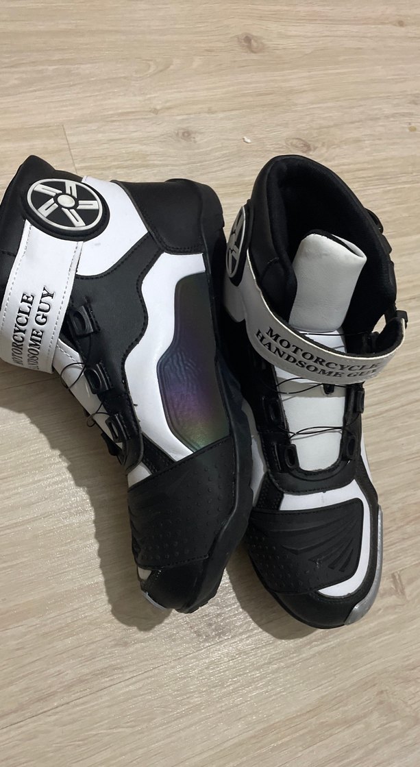Beyaz gri ekru renkte, baskı detaylı, velcro kayışlı, Bağcık kısmı çevirerek ayarlanabilen motosiklet kullanımına uyumlu vites atımı için burun bölgesi özel kauçuk korumalı kadın botu Motorcycle Handsome Guy