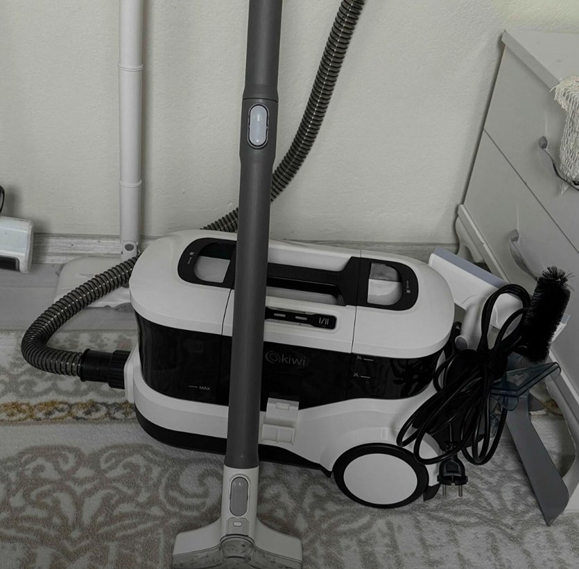 Beyaz ve gri renkte, tutma sapı ve hortumu olan Kiwi elektrikli süpürge. Kolay kullanım ve etkili temizlik sağlar satma sebebim koltuk yıkama işine girdim daha büyük olanı almak istiyorum toplasan 5 koltuk yıkandı çekim gücü su aznesi büyük daha pahalı markalardan daha kullanışlı başlıkları var çeşitli olarak garantisi devam ediyor 1 sene var garantisine