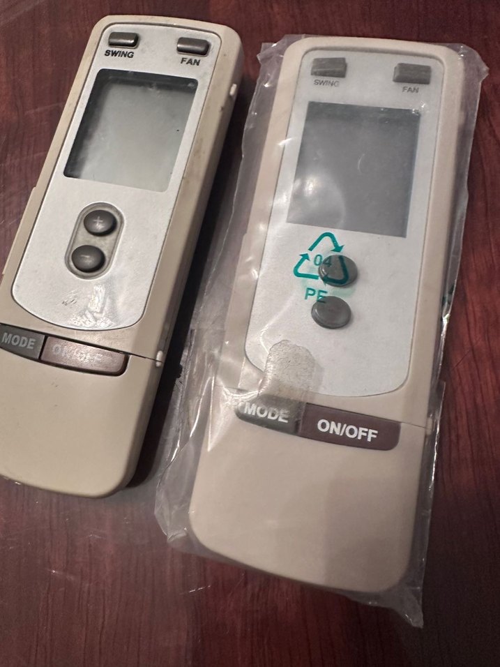 2 adet fiyatıdır Beyaz ve gri renkli klima uzaktan kumandaları, MODE ve ON/OFF düğmeleri bulunur. Dijital ekran ve swing ile fan kontrolü mevcuttur. Biri paketli, diğeri kullanılmıştır. ❄️