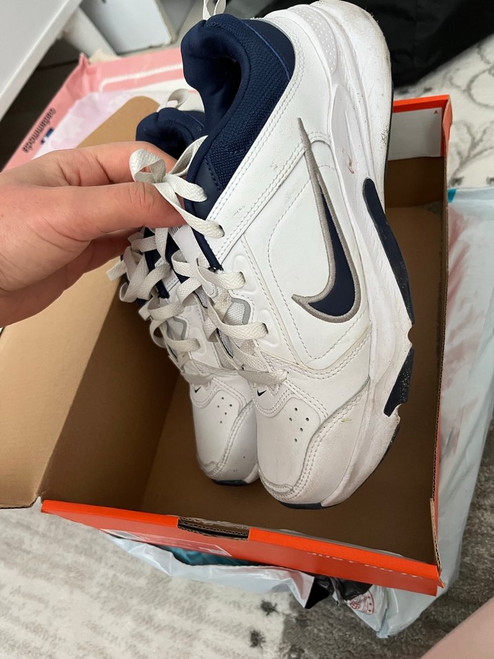Beyaz ve gri renkli Nike kadın spor ayakkabısı ve bağcıklı kapama ile sportif ve şık günlük kullanım için uygundur. Küçük geldiği için satıyorum