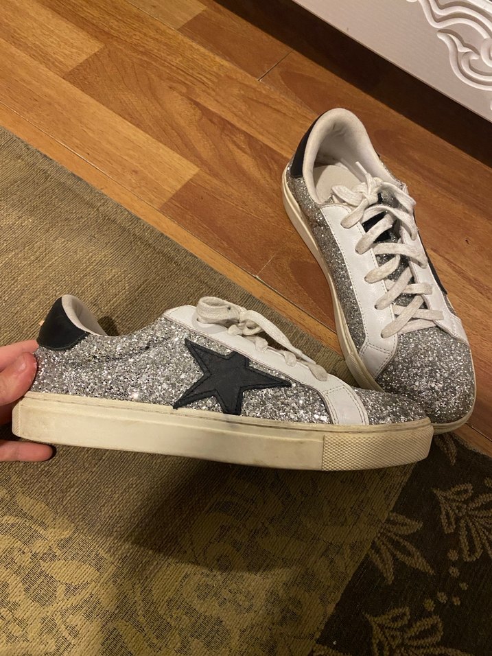 Beyaz ve gri renklerde, parlak sim detaylı, yılan desenli ve kauçuk tabanlı platform spor ayakkabılar, günlük sokak stili için uygun.
