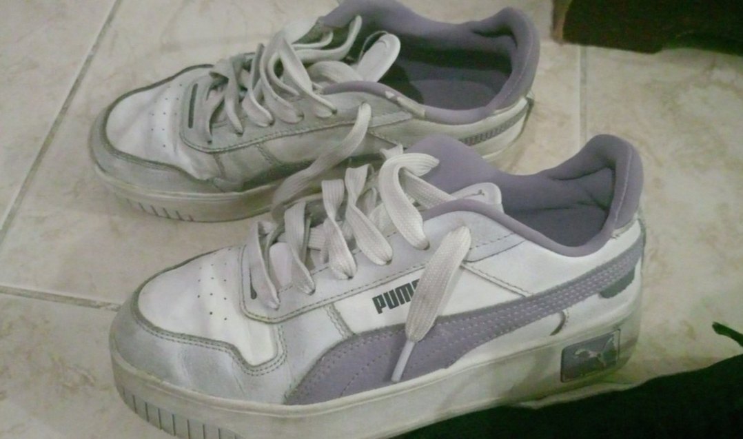 Beyaz ve gri renkli, platform topuklu kadın spor ayakkabısıdır. Bağcıklı ve kauçuk tabanlıdır. Spor ve sokak stili için uygundur. Desensiz tasarıma sahiptir.