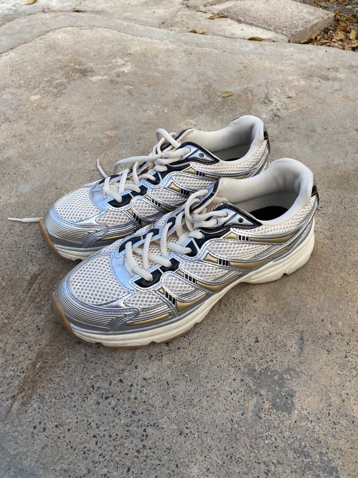 Beyaz ve gri renkte, spor ve sokak tarzına uygun, kauçuk tabanlı kadın sneakers. Rahat ve sade tasarım, zahmetsiz şıklık sunar.