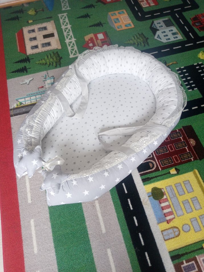 Beyaz Gri Yıldız Desenli Bebek Yatak Minderi