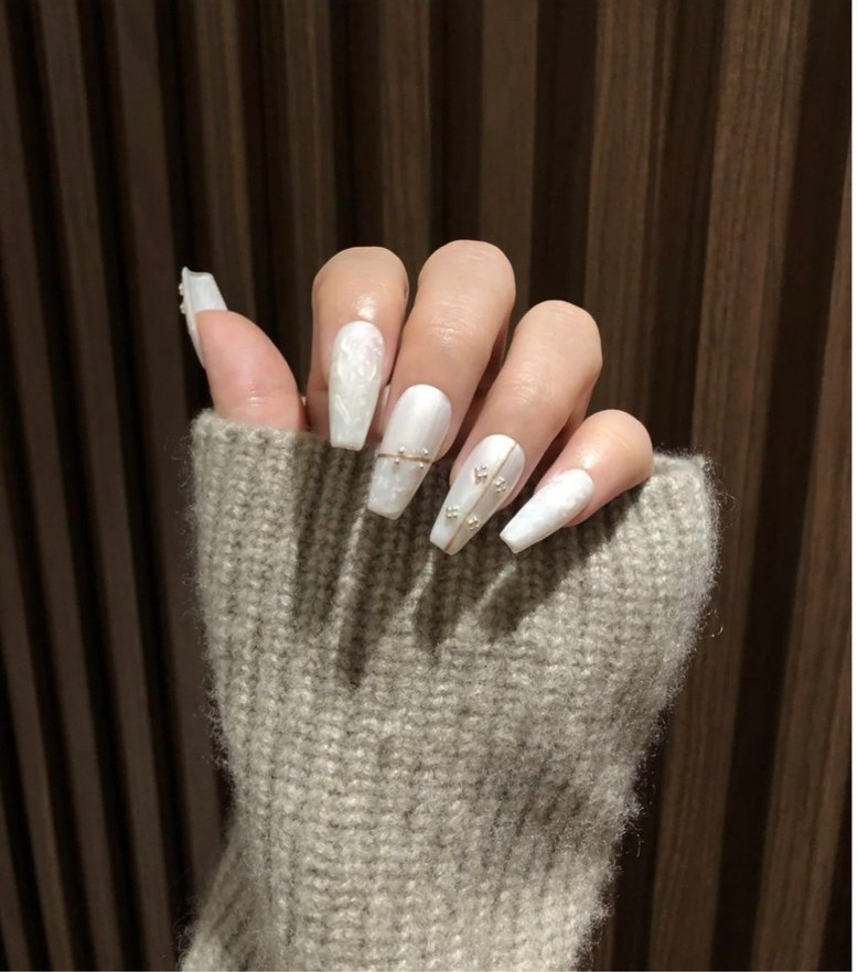 Beyaz Gri Zarif Tırnak Süslemeleri
