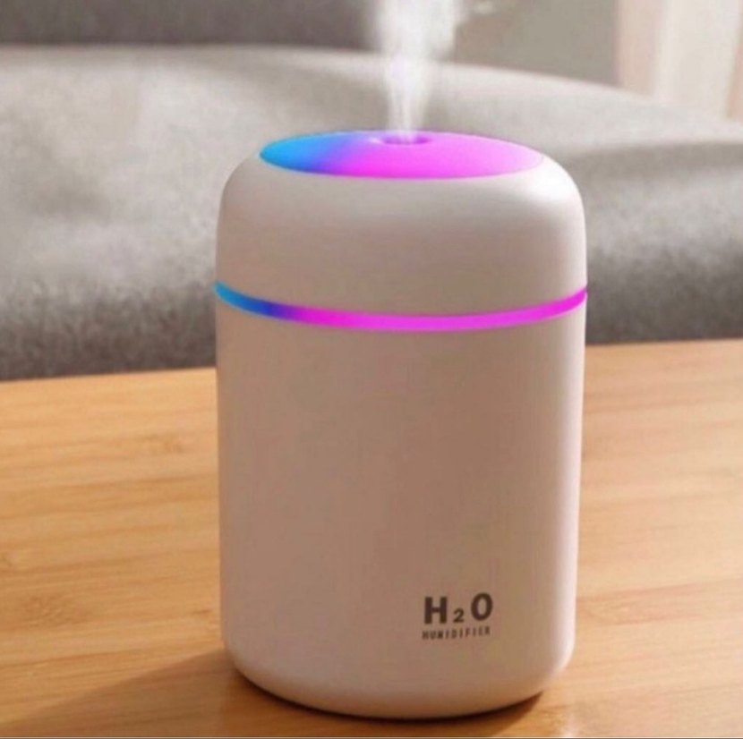 Beyaz H2O nemlendirici, renkli ışık halkasıyla nem sağlar ve hava kalitesini artırır.