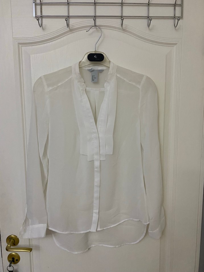 Beyaz Hakim Yaka Uzun Kollu Transparan Tül Gömlek