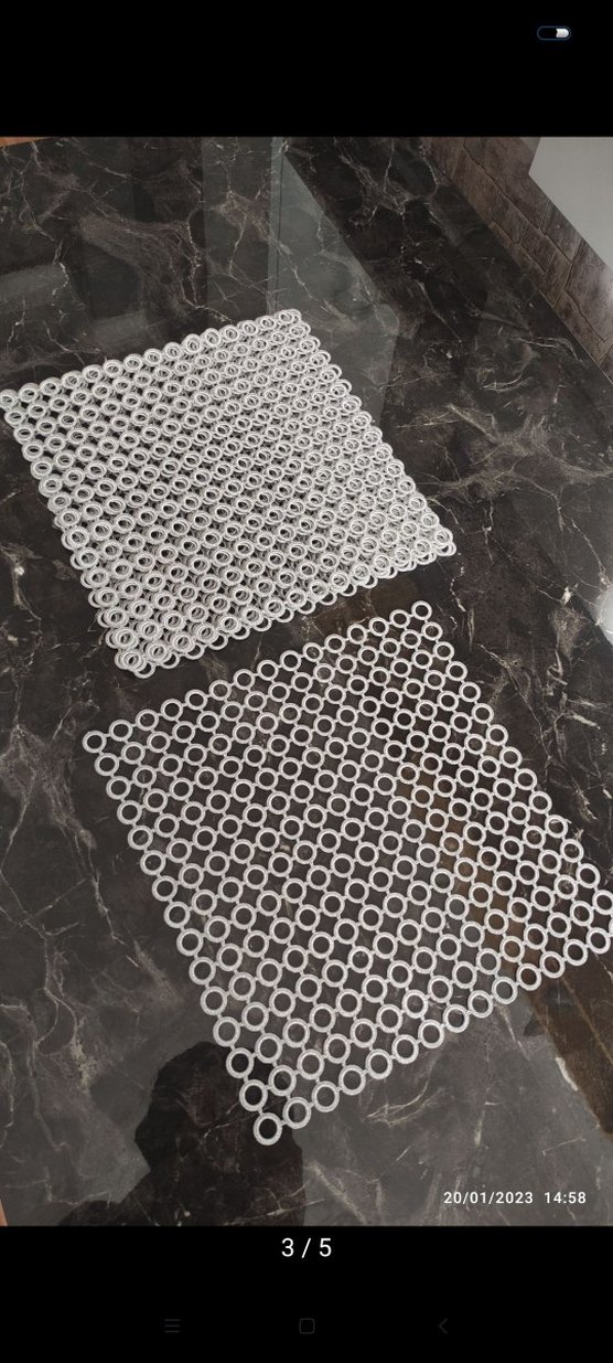 Geleneksel tarzda yapılmış, beyaz halka desenli el yapımı suplalar. Masanıza dekoratif bir dokunuş katar.