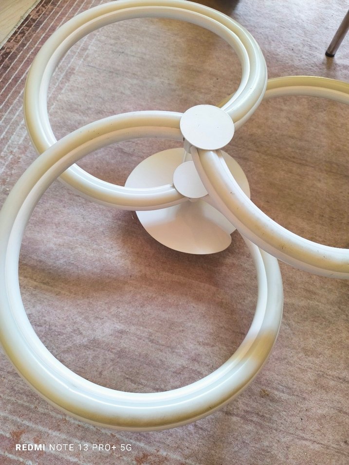 Beyaz renkte, modern halka tasarıma sahip tavan lambası, yumuşak ve eşit aydınlatma sağlar. Çağdaş iç mekanlara uygundur.