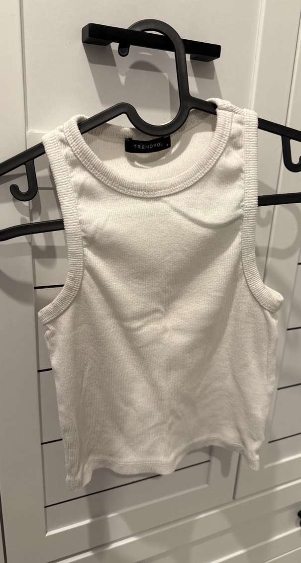 Beyaz Halter Yaka Fitilli Kadın Atlet. Marka temsilidir.