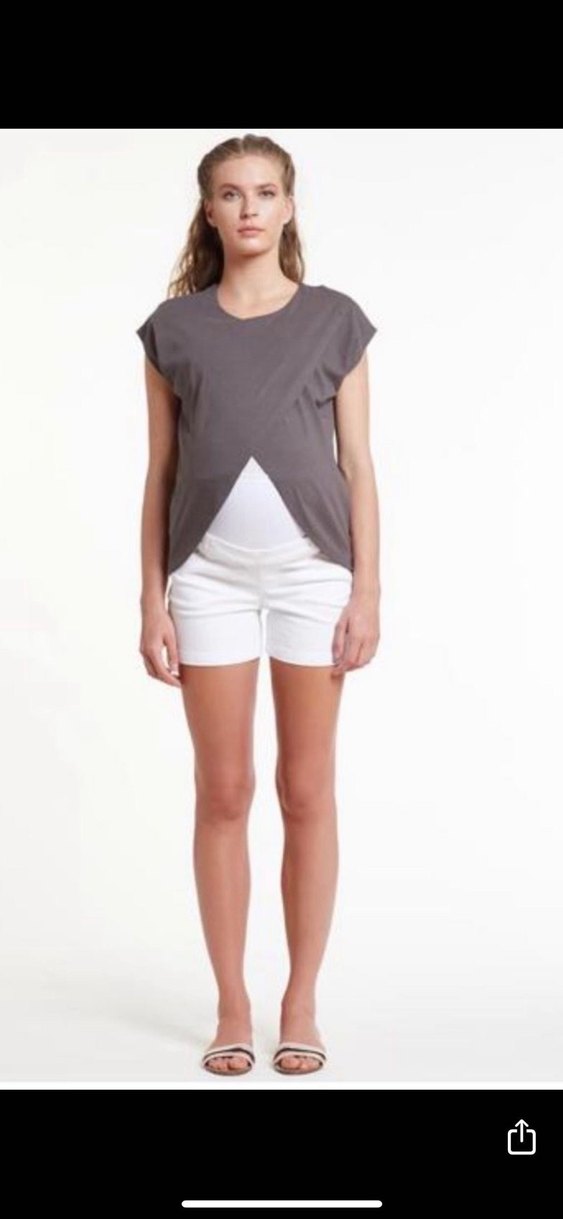 Yumuşak pamuktan yapılmış, gündelik kullanıma uygun gri hamile mini şort, çağdaş tarz ve rahatlığı bir arada sunar.