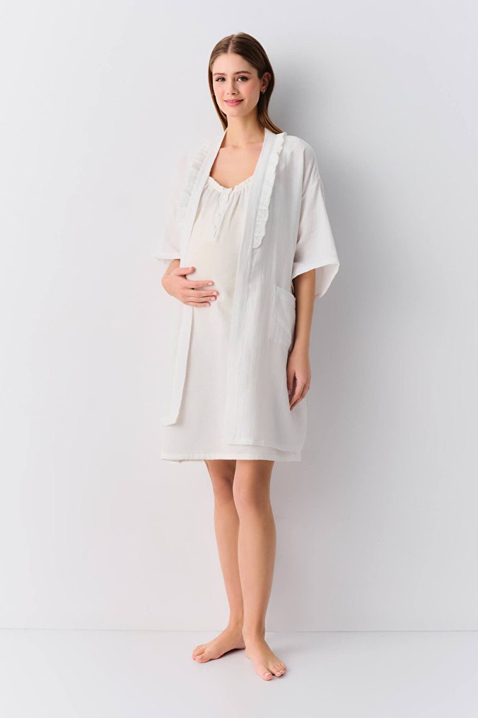 Beyaz Hamile ve Emzirme Gecelik, Kısa Kollu