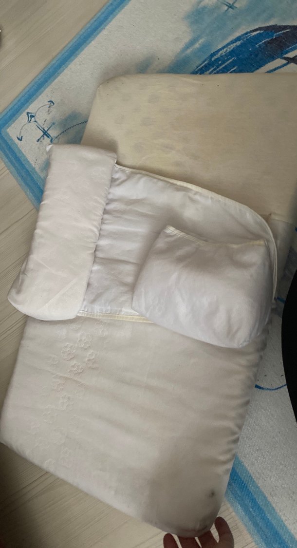 Hamilelik ve emzirme için beyaz, desensiz, yumuşak kumaşlı yastık.