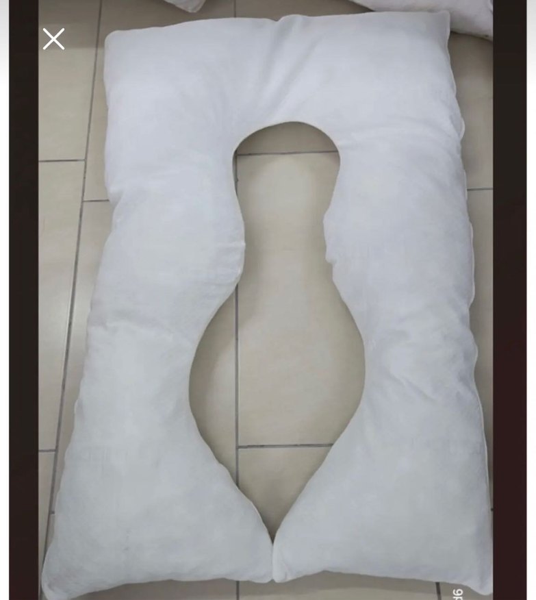 Hamilelik sırasında konfor ve destek sağlayan beyaz emzirme yastığı. Yumuşak gri tonlarda ve özel şekildedir.