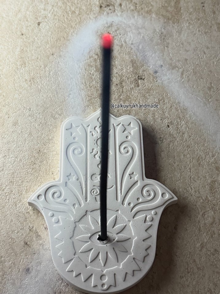 İnce tütsü çubukları için detaylı desenli beyaz gri Hamsa şekilli tütsülük. ️