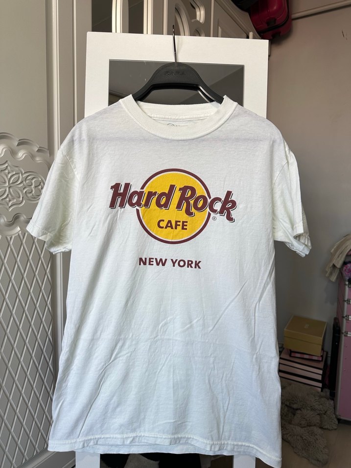 Orjinal hard rock t shirt Pamuk kumaştan, kısa kollu ve yuvarlak yaka erkek tişörtü. Hard Rock Cafe New York baskılı, bol kesim, beyaz renkte rock punk tarzı tişört.