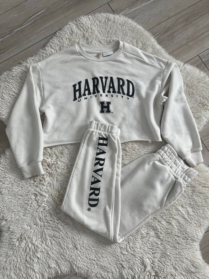 Beyaz Harvard Baskılı kız çocuk takım