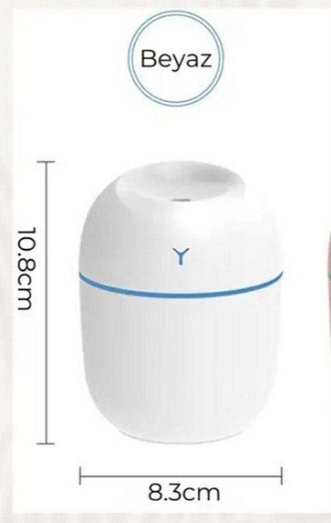10.8 cm yüksekliğinde beyaz renkli hava temizleyici ve nemlendirici. Minimal ve modern tasarıma sahiptir, yumuşak mavi ışık bulunur. ️