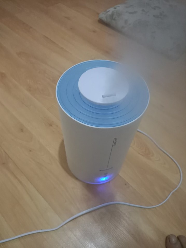 Beyaz renkli hava temizleyici ve nemlendirici, ince bir mist çıkararak havayı temizler ve nemlendirir. Yumuşak ışıklı göstergesi ve şık tasarımı vardır. nerdeyse hiç kullanılmadı temiz sorunsuz calışır durumda kaliteli ve sağlam