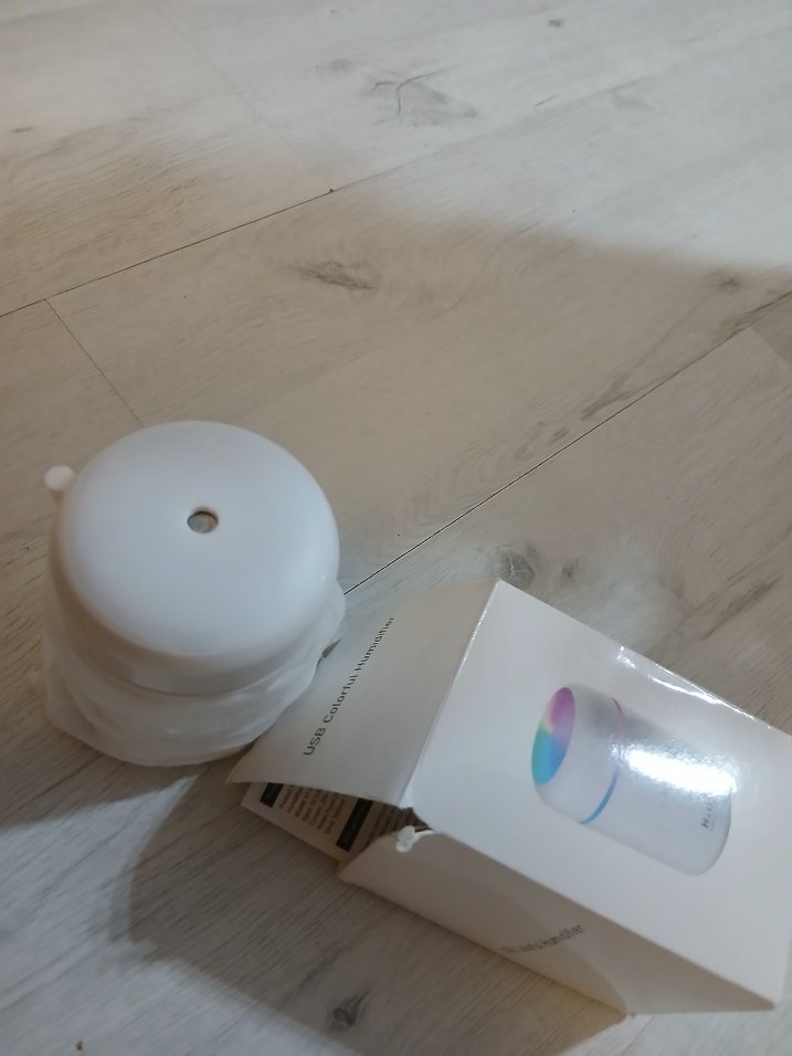 Beyaz renkte, kompakt tasarımlı hava temizleyici ve nemlendirici. Orijinal kutusuyla birlikte.