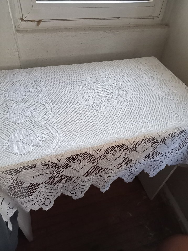 Çiçek desenli beyaz dantel masa örtüsü, her masaya klasik bir dokunuş katmak için uygun.