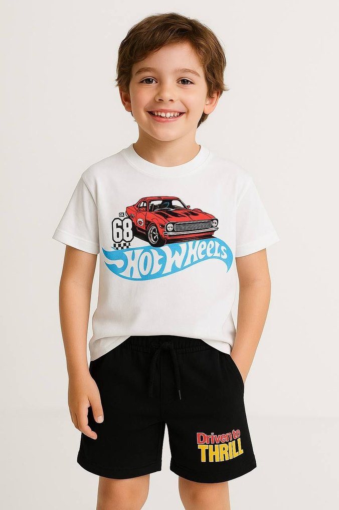 Beyaz Hot Wheels Baskılı çocuk altüsttakım
