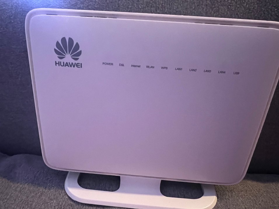 Güç, DSL, internet, WLAN, WPS ve LAN bağlantı göstergeleri bulunan beyaz Huawei dizüstü bilgisayar. Ağ bağlantı özelliklerine sahiptir.